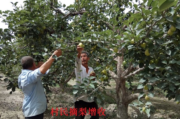 贫困户托合尼亚孜·毛尼亚孜家里地少,经济收入低,是村里的贫困户,在果园里摘梨一天可以收入60元钱,几天功夫就挣了几百元。