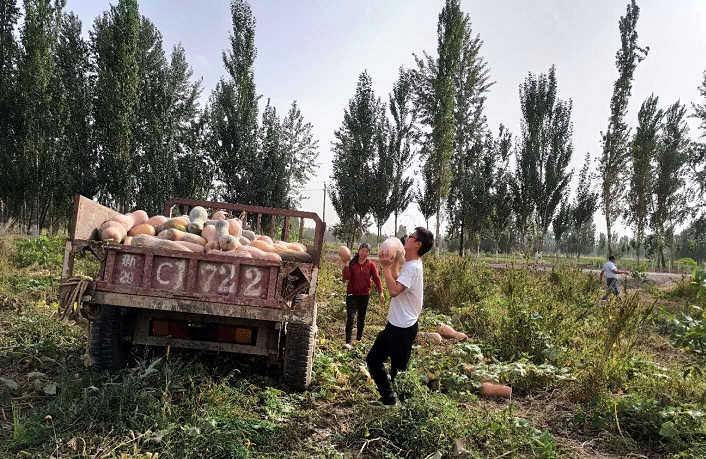 清风网讯 (通讯员 拜城县税务局 李智军)2018年9月7日,工作队像往常一样开展着入户走访工作,在经过一片南瓜地时,看着村民艾合买提·亚森与自己的女儿正在地头唉声叹气的在聊着什么,看到后,工作队第一书记艾买尔·吐尔地走近询问得知,原来是自己家的南瓜今年获丰收了,但是家里没有拖拉机和劳动力,父亲年龄也大了,平常自己还要照顾两个孩子上学,面对地里成熟的南瓜迟迟未收获,心里着急如焚。