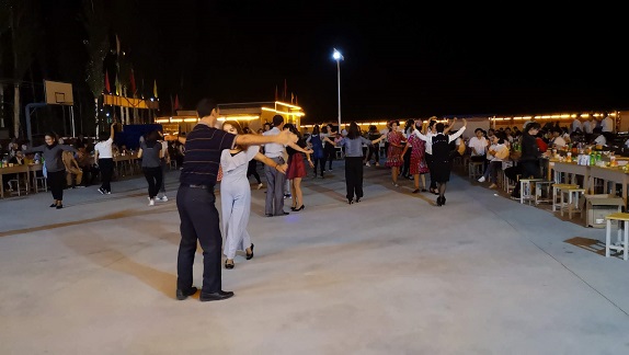 清风网讯(阿瓦提县疾控中心 王燕)9月8日下午七点,乌鲁却勒镇阿依库勒村迎来了520名乌鲁却勒镇各中小学幼儿园教师,在阿依库勒村这个闪闪发光的大舞台上,教师们展现了他们的青春活力,村民们展现了他们的热情,他们同吃一锅饭、同跳一支舞,他们团结、友爱、和谐。