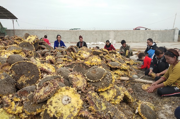工作队副队长刘欣说:“我们采取‘合作社+贫困户’的模式种植经济作物向日葵,让贫困户尝到这种种植模式的甜头,明年我们将继续与合作社合作,‘小康路上一个也不能少’,贫困户也要一起奔小康!”