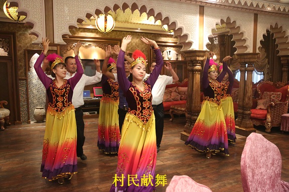 9日晚上,八队的结亲干部们将亲戚迎到了金山大酒店,在这里举行筹备已久的“民族团结一家亲”联欢晚宴。一道道可口的菜肴,一个个精心准备的节目,让席间掌声、欢呼声不绝于耳。大家热烈地交谈,不时举杯同庆,欢快的气氛感染了每一个人,不时有村民和八队干部自发上台表演助兴,让晚宴的节目数量都翻了个倍。酒足饭饱后,一曲又一曲的麦西来普一直跳到了酒店打烊。八队干部们将亲戚送上回宾馆的车,他们又急急下来不断地说着感谢的话:“今天真是太开心了,你们太好了,真的感谢你们!”尽管干部们说着明早还要再见,亲戚们依然一遍又一遍地感谢,不舍得此刻分别。