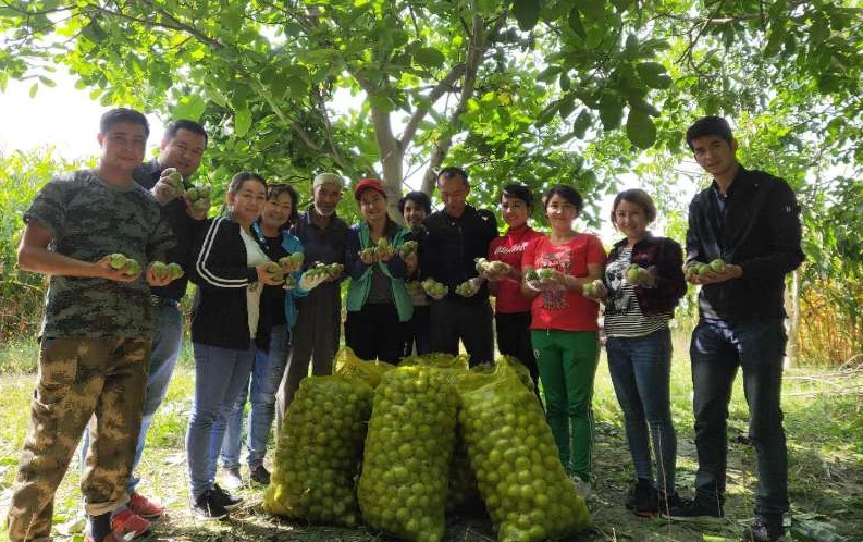尽管地里灰尘四溢,蚊虫肆虐,但仍然没有减少大家干活的劲头,所有人分工合作,男人们要么拿起长杆敲打着高处的核桃,要么爬上树去采摘长在树上比较顽固的核桃,女人们则拿起水桶和麻袋捡地上掉落的核桃,所有人都十分小心仔细,生怕漏掉一个核桃,这都是他们一年的劳动成果。就这样大家越干越起劲,就算汗水打湿了衣襟也不曾停下,经过一天的劳动终于将所有核桃采摘完成,看着辛苦的大家亚森大叔感动的说道:“真的非常感谢你们,要不是有你们的帮助,我家的核桃恐怕就要烂到地里了,这是我们一年的心血啊!”