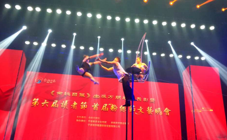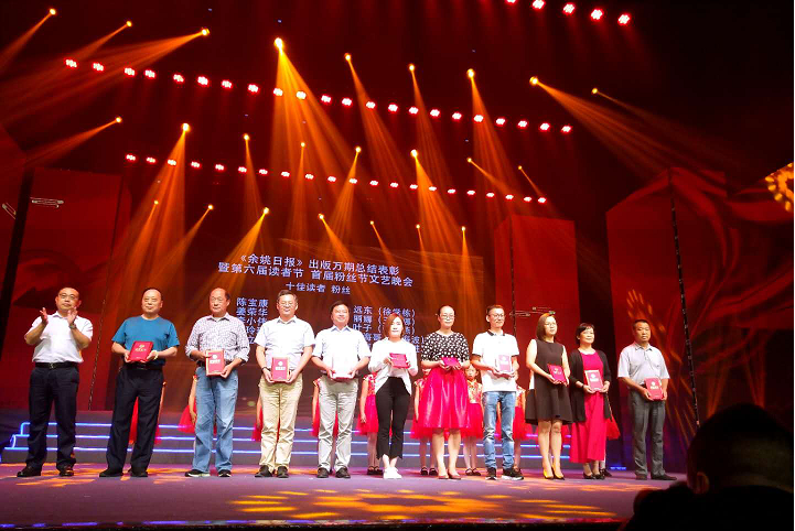 当天晚上,《余姚日报》出版万期总结表彰暨第六届读者节、首届粉丝节文艺晚会在余姚龙山剧院举行。歌舞、诗朗诵、杂技、流行舞等颇具特色的文艺节目纷呈登场,赢得了台下阵阵掌声,以此共庆日报丰收时节,同祝日报美好明天!余姚市委常委、宣传部部长王娇俐,宁波日报报业集团党委委员、副社长温兴邦,余姚市人大常委会副主任姚桂珍,余姚市副市长王安静和市政协副主席魏利民等领导出席晚会。