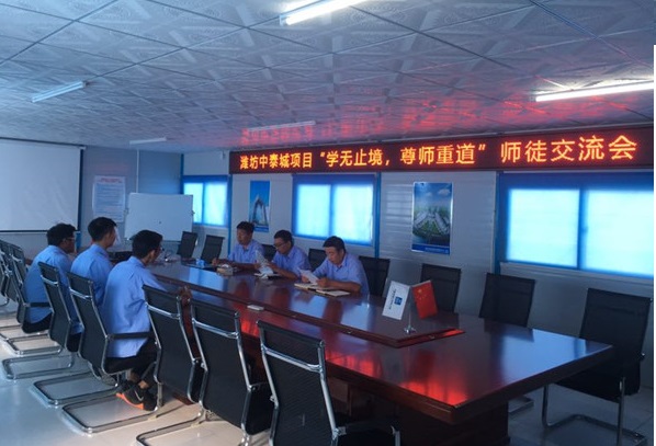 清风网讯 (中建二局二公司青岛管理中心 薛永昌)9月9日,中建二局二公司潍坊浮烟山中泰城项目部举办“学无止境,尊师重道”师徒交流会,邀请了三对师徒代表进行现场交流。