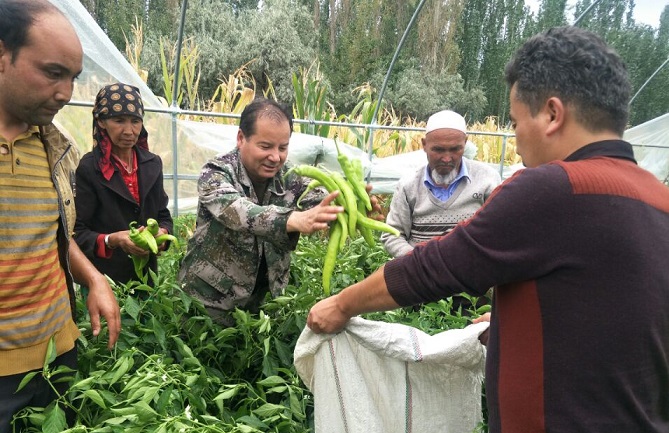 清风网讯 (拜城县水利局 吐尔洪·卡迪尔 孙萍)又是一次丰收季,2018年5月份给村组贫困户发放的温室大棚,农户种植的辣椒成熟了,可农户又喜又忧,喜的是第一次这样种植辣椒,没想到辣椒长的又大又好,忧的是辣椒熟了,这么多的辣椒往哪里销售呢,老虎台距离县城80多公里,家中没有交通工具,这些辣椒在家门口卖不知道要卖多久。拜城县水利局驻老虎台乡科克兰木村“访惠聚”工作队队长吐尔洪·卡迪尔得知这个消息,通多对方询问,联系到了水利在建企业,先后两次对贫困户辣椒进行集中大规模出售。从温室大棚安置、辣椒种植和采摘、出售,吐尔洪卡迪尔带领工作队员全程参与,并在和农户一起劳动的过程中宣传致富门口,帮助农户更好的脱贫致富。