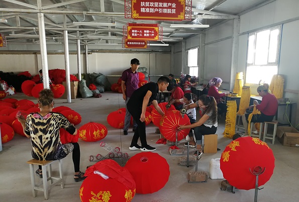 说起这个灯笼厂,它可是连着疆内疆外检察官们的心。它是由最高人民检察院下派自治区人民检察院挂职的郭立新副检察长牵线引进,辽宁省大连市城郊地区人民检察院,筹措扶贫资金10万元钱,自治区人民检察院驻硝尔买里村“访惠聚”工作队负责实施并建设完成,正是在检察官们的无私相助下,硝尔买里村才有了这第一个工厂,村民们才实现了在家门口就业。