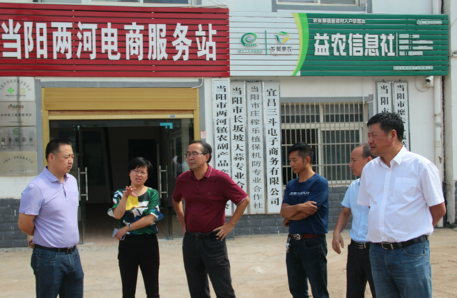 图为当阳市政协主席孙照玉(左三)到两河镇调研农村电商发展情况