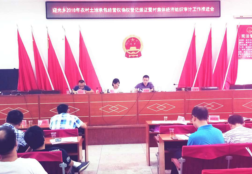 清风网讯 (通讯员 新邵县迎光乡综合办 江涛)9月11日,迎光乡召开农村土地承包经营权确权登记颁证暨村集体经济组织审计工作推进会,全体乡、村干部,各部门负责人参加会议。