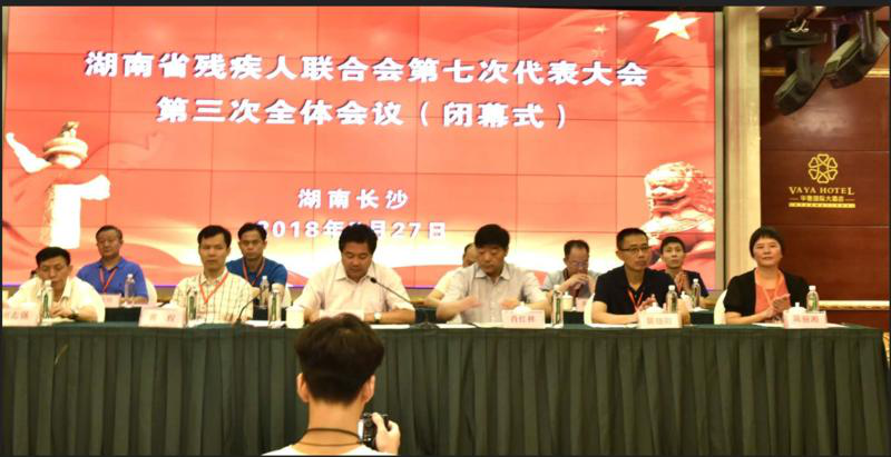 陈丽湘(右一)在湖南省残联第七次代表大会第二次全体会议上