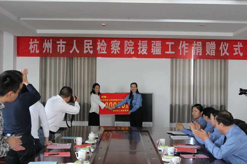 最后,邬秀君代表杭州市检察机关向阿克苏市检察院送上援助资金30万元,据统计,杭州市检察机关自2011年至今已援助240万元资金。