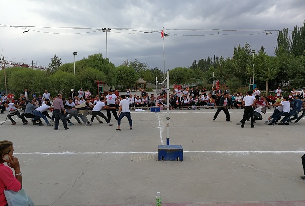 清风网讯 (沙雅县安监局 崔文君 )金色的秋天是收获的季节,给人们带来丰收的喜悦,在这丰收之际,为丰富农民群众的文化娱乐生活,倡导健康文明的生活方式,9月12日尤库日库勒达希村组织开展了秋季农民拔河、篮排球比赛活动。