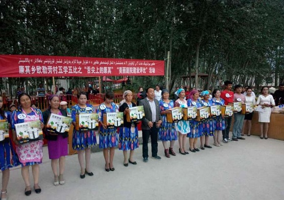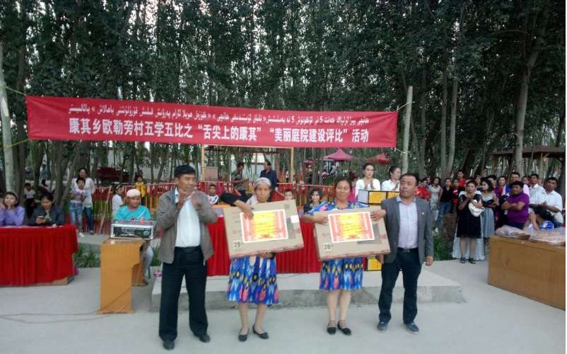 此次活动,欧勒旁村表彰了“美丽庭院建设”优秀个人、优秀家庭,为他们颁发了奖状和精美礼品,鼓励他们继续保持,为全村做好带头模范作用。同时借助活动机会,还现场提问了大家关于平安建设方面的应知应会知识,村民们踊跃答题,高兴领取村干部们准备的小礼品。最令大家期待的还是“舌尖上的康其”美食活动,大伙大展厨艺,将做的最好吃的美食带到现场参加评比,经过激烈紧张的评选,村民阿布都卡哈尔·依买尔所做的大盘鸡赢得美食活动头筹。