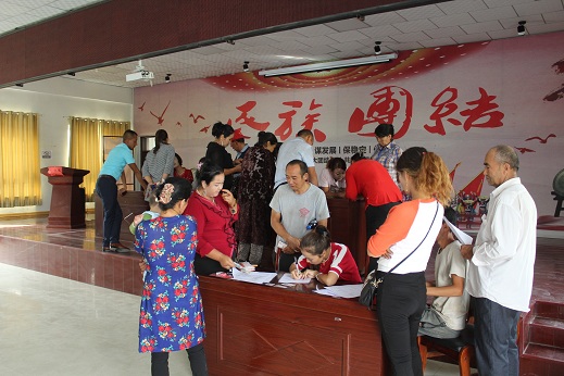 9月,棉花进入采摘期。同时,该月也是新村农民务工的“黄金期”,部分村民想外出务工赚钱,但是考虑到需要照顾家庭等原因,希望就近就地找一份工作。本地棉花种植大户又需要拾花工采摘棉花。由于双方缺少信息交流平台,产生种植户招工难,村民找工难的现象。为解决这一问题,工作队联合村“两委”于8月中旬对全村富余劳动力务工情况进行摸底调查和用工需求统计,利用周一升国旗、农牧民夜校、入户走访等方式进行广泛宣传和动员,尤其是鼓励贫困户、低保户等家庭中有劳动能力的村民要通过采摘棉花等务工增加收入,改善生活。