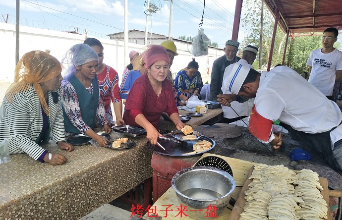 “我从父亲那学了一套烤包子的好手艺,刚开始由于店面小,条件差,生意不怎么景气。今年,在工作队的帮助下,我对烤包店重新扩建装修,工作队还经常为我的烤包子‘带盐’,现在生意不错,客源稳定,就‘巴扎天’一天能卖掉1000多个烤包子。”亚森·买买提高兴地说。