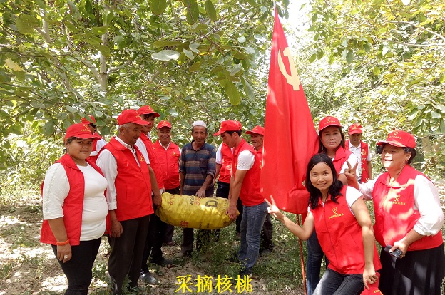 为进一步弘扬党的优良传统,拉近党群干群关系,英买力镇第六党总支于9月13日上午开展了以‘爱心助农促增收·铭记党恩跟党走’为主题的“党日”活动,英买力村广大党员干部在地区农业局驻沙雅县英买力镇英买力村“访惠聚”工作队党员干部的带领下,深入到家中缺乏劳动力的贫困群众的田间地头,通过采摘辣椒、核桃及为复播白菜除草等活动,切实帮助贫困群众解决生产生活实际苦难,得到广大群众的一致好评。