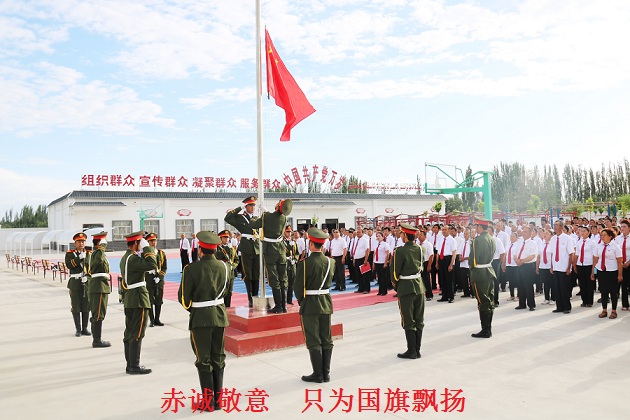 清风网讯(中国光大银行乌鲁木齐分行 向家乐)当太阳脱离地平线,将激情的阳光洒遍整个英买力村时,有那么一支队伍,他们迎着东方的晨曦,伴着铿锵的乐曲,将庄严的国旗徐徐升起。他们是一抹神圣的橄榄绿、一群没有军衔的士兵,用黄金岁月兑换激情与汗水。在训练中用汗水和坚持激荡青春,在任务中守卫国旗无上的荣誉。他们就是英买力村国旗护卫队。