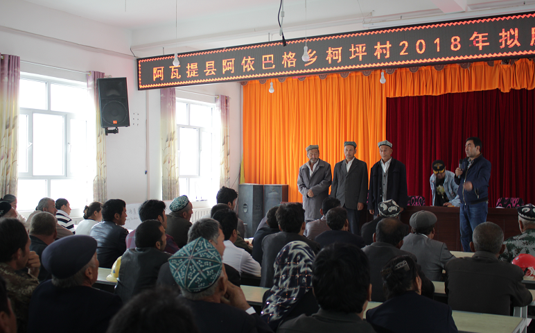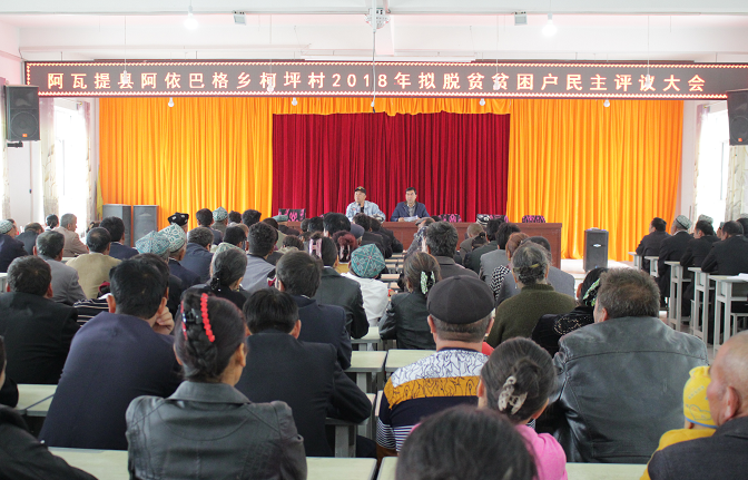 (图为阿依巴格乡柯坪村2018年拟脱贫贫困户民主评议大会现场)