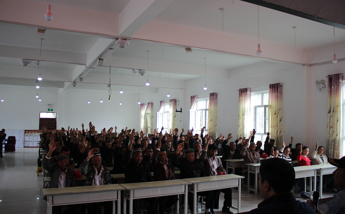 (图为全体贫户、村民代表、党员、干部举手表决,全票通过)