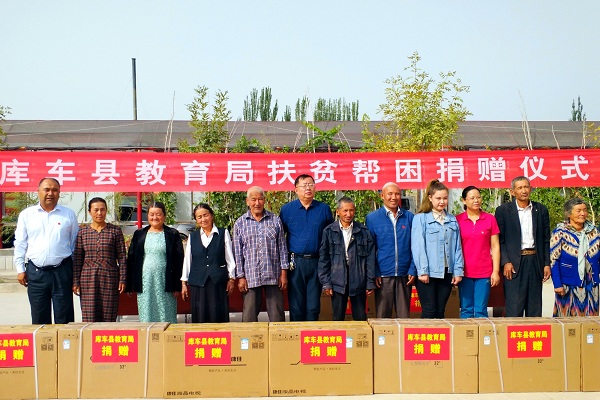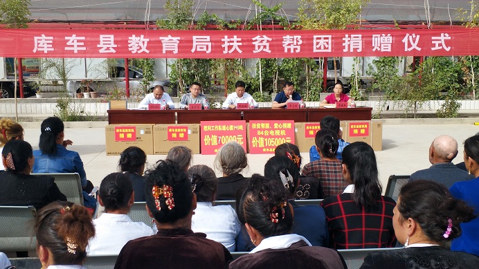 清风网讯 (通讯员 阿克苏地区“访惠聚”办 张晓丽)9月16日,库车县教育局局长郭志清一行带着85台32英寸液晶电视机和24吨过冬“暖心”煤炭,来到库车县哈尼喀塔木乡克其克萨依艾日克村,与驻村工作队融情举行了捐赠仪式。