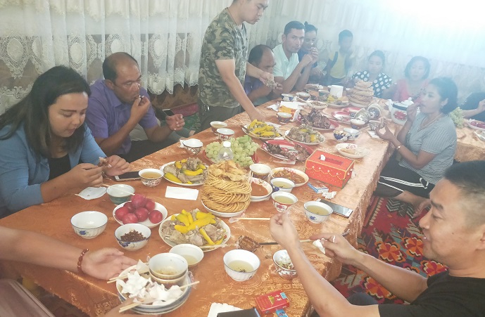 清风网讯(通讯员 沙雅县委编办 纪厚海)沙雅县委编办驻古勒巴格镇克其克古勒巴格村工作队员和派出单位干部主动捐款2200元,组织工作队队员、全体村干部和接亲群众36人,在村民阿吾提·马木提家中开展大型“民族团结一家亲”集体联谊活动,各族群众载歌载舞、欢聚一堂,在享受美食的同时,聊家常、谈变化,共同感受来自祖国大家庭的和谐、温馨。