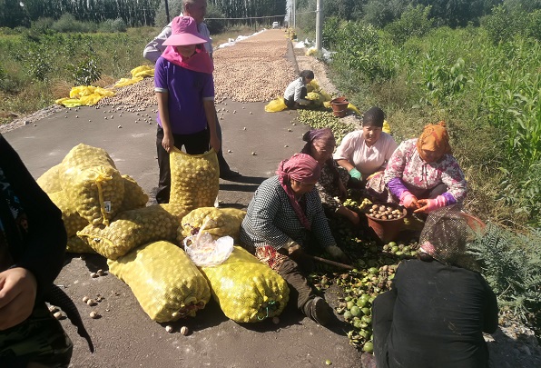 当前正值核桃成熟采摘季节。阿克苏市税务局驻村工作队在为村民丰收而喜悦的同时,也全力为全村贫困村民的增收致富出谋划策。硝尔村麦麦提·依迪热斯等4户核桃种植大户需要务工人员采摘核桃,驻村工作队于是组织全村34民贫困群众前去务工,一方面解决了核桃种植大户用工问题,一方面为贫困户增收致富找了个好工作。
