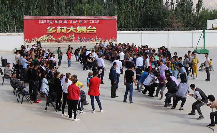 清风网讯(通讯员:马阳阳)为庆祝首个中国农民丰收节和中秋节,大力营造浓厚的节日氛围,广泛弘扬农耕文明和中华优秀传统文化,丰富各族群众文化生活。9月17日下午,由阿克苏地区渭干河流域管理局驻库车县阿格乡康村工作队联合康村“两委”联合举办“庆丰收 迎中秋”系列活动,全村农民群众通过拔河、跳绳、抢凳子、踩气球、绑腿跑等多种形式的趣味活动“庆丰收 迎中秋”,让康村农民群众过了一个欢乐祥和、喜庆热闹的节日。