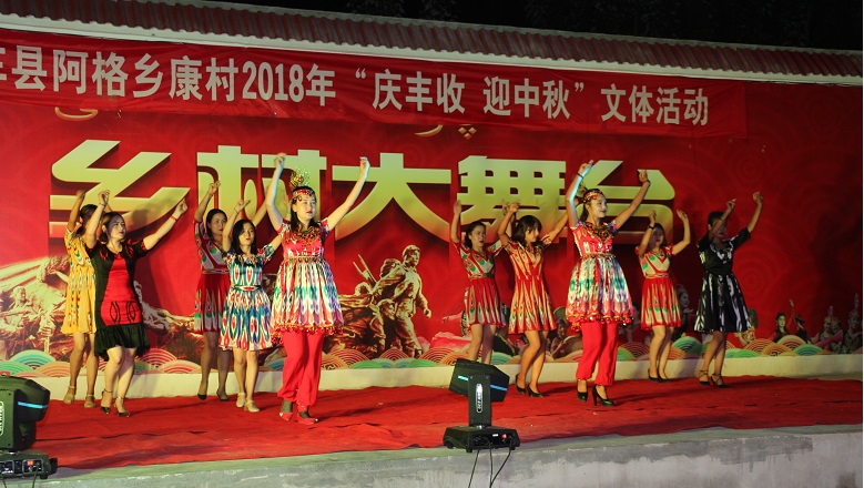当晚,在康村还举办了精彩的文艺汇演和篝火晚会,一场场精彩的演出引得台下观众笑声连连、掌声不断。随后,村民们围着篝火跳起了欢快的麦西来甫,大家一起载歌载舞,欢笑声汇聚在一起,幸福的微笑洋溢在大家的脸上,营造出乡村和谐、丰收、欢乐的景象。现场气氛热烈,观众久久不愿散去。此次活动的举办充分体现了“让农民成为节日的主角,农民的节日农民乐”的特点。