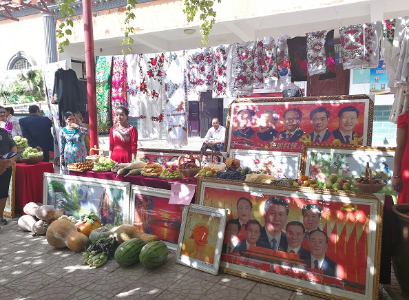 2018年9月17日这一天“农民丰收节-特色农产品大比拼”正在乌尊镇果勒艾日克村正在火热进行中。来自19个村的代表队积极参赛,一大早就开始摆弄忙活,只为勒前来参观的大家展示自己村的特色;精心采摘的特色果实呈现在大家面前。一颗颗“大胖子”不但展示着自己的分量,还透露出每个代表村的实力,充满勒对美好生活的向往,蕴含着赞美没有共产党就没有今天的美好生活的寓意。