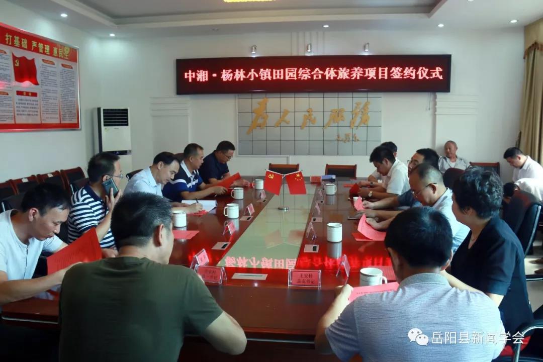 清风网讯(胡为 许萍)9月17日上午,中湘•杨林小镇田园综合体旅养项目签约仪式在岳阳县杨林乡政府隆重举行,岳阳县委常委、县委办主任易新岳出席签约仪式并发表讲话,县贸促会会长彭华,杨林小镇项目董事长胡志亮,中湘集团董事长、杨林小镇董事张浩琳,长沙善道生物总经理鲍嵘,杨林小镇项目副总经理王学琳等出席签约仪式。