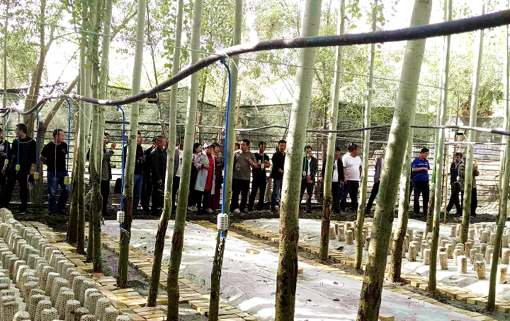 在黑木耳种植示范基地,考察团对该村因地制宜开展林地黑木耳种植项目给予高度评价。目前该村利用林地、林下共7亩地种植菌棒2.4万株,受益建档立卡贫困户15户,预计可生产鲜木耳8吨左右,每户贫困户可增收8000元左右。