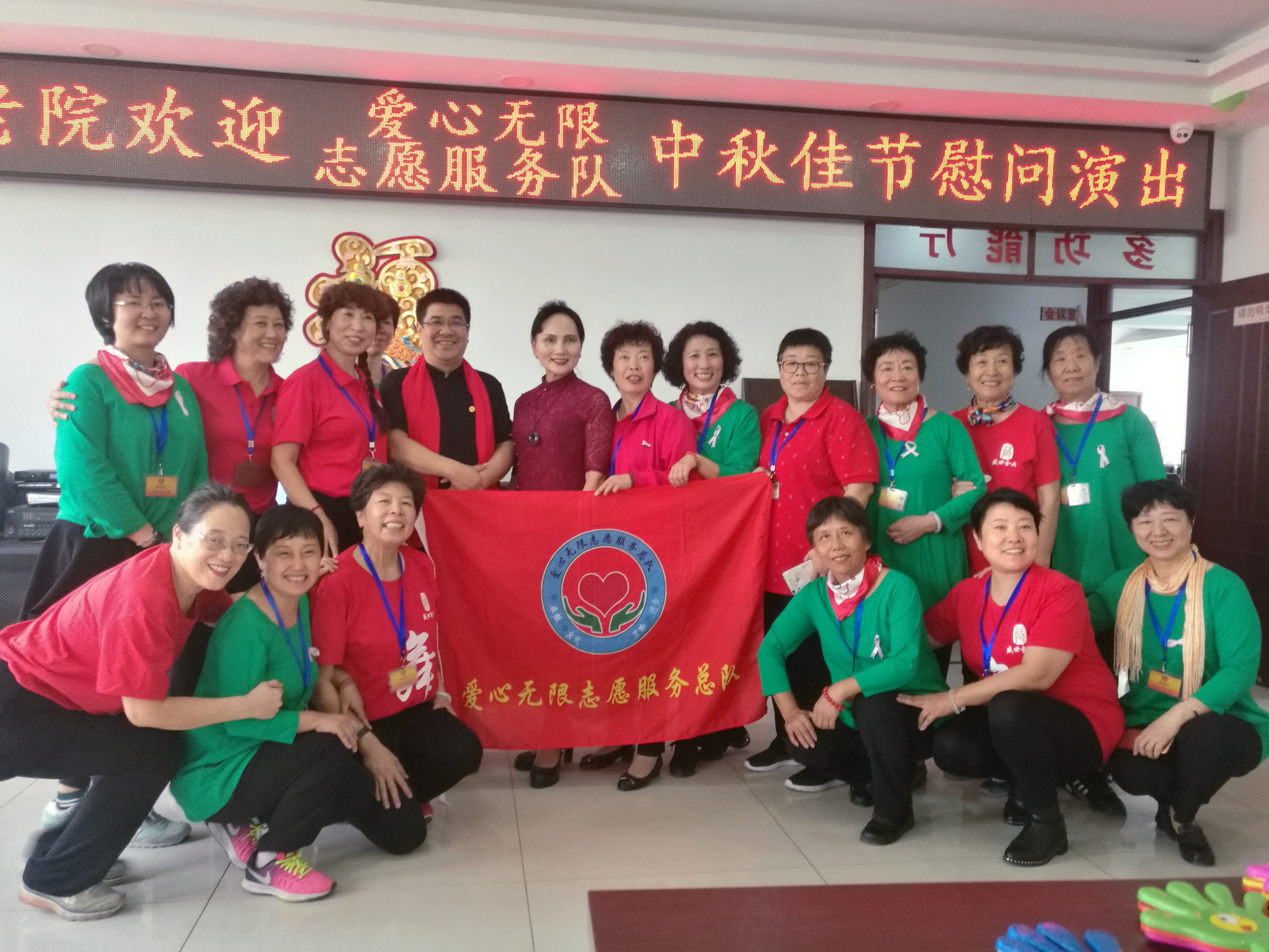 清风网北京消息朱东霞报道: 9月20日,时代中国网合作单位石景山民族养老院又一次迎来了爱心无限的志愿者,这支爱心无限志愿服务队的团队是由友谊欣园分队、爱心双手长生学分队组成,在两节来临之际,他们来到养老院给老人们带来温馨的问候和快乐。友谊欣园分队主要是以乳腺癌康复后的志愿者为主,爱心双手长生学分队是用双手启动自身或病患身体的修复系统,使病痛得到好转的一群志愿者,爱心无限志愿服务队已经多次到民族养老院与老人联欢,给老人们唱歌、跳舞、聊天,让老人们能够在节日感受到亲人般的温暖和快乐。而他们在一次又一次的志愿活动中,在给予别人快乐同时也给自己带来快乐,在志愿服务中感受到了社会给予他们的爱,因而姐妹们无怨无悔的走在一起,牢记志愿者精神:奉献,友爱,互助,进步,始终坚定着自己的目标,为了美好的明天,肩并肩一起前行在志愿者的路上。