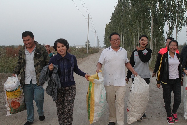 清风网讯(通讯员 阿克苏地区“访惠聚”办公室 马金刚)金秋十月,丰收的季节,沙雅县英买力镇墩买里村村民合尼孜木·依明的棉田里一派忙碌的景象,沙雅县社保局长李玲霞带领11名女干部利用“国庆节”下基层的机会帮助合尼孜木·依明捡棉花,眼下正是棉花收获的季节,也是棉花秋收的关键时刻。