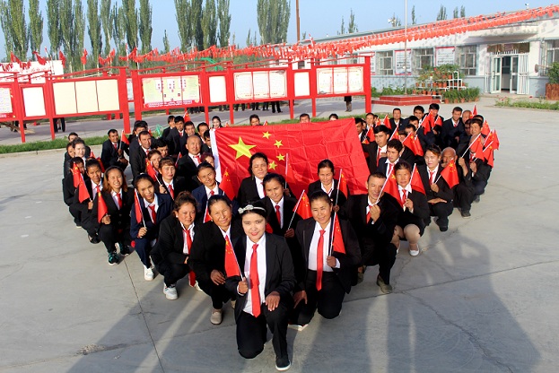 清风网讯 (中石化销售有限公司新疆阿克苏石油分公司 张峰)10月1日上午,中国石化销售有限公司新疆阿克苏石油分公司驻阿克苏沙雅县努尔巴克乡亚当村工作队,组织该村全体村民们在村委会大院,举行了隆重的国庆升旗仪式。开展了升国旗、唱国歌、发声亮剑、观看“国旗的由来”、我与国旗合个影活动,该村工作队、村干部、包村领导、村民等360余人参加了此项活动。