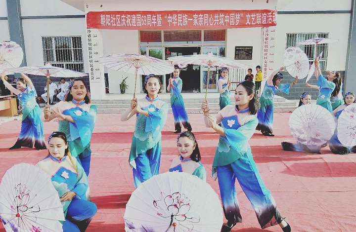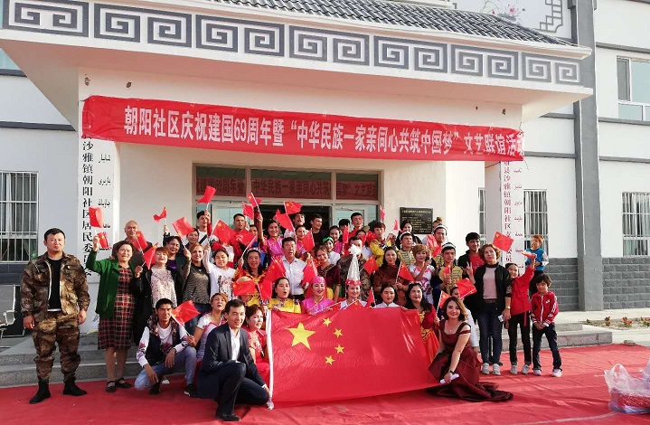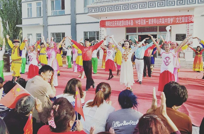 清风网讯 (通讯员 沙雅镇朝阳社区 杜灵芝)为丰富各民族居民的文化生活需求,搭建各民族居民间相互交流的沟通平台,不断增强社区的凝聚力、向心力,营造各民族居民团结、欢乐祥和的社区氛围,10月5日下午,沙雅镇朝阳社区大院内开展了"建国69周年暨中华民族一家亲同心共筑中国梦"文艺联谊活动。