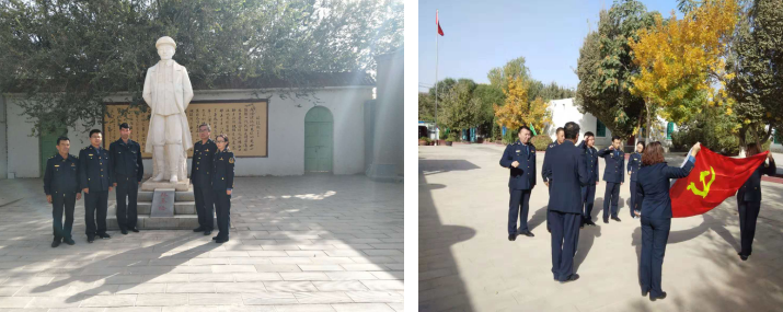 清风网讯 (通讯员 焦磊 哈尼克孜)“国庆节”期间新和、沙雅路政管理局联合党支部全体党员们来到库车县林基路爱国主义教育基地参观,全体党员兴致勃勃地参观了林基路爱国基地,认真观看了一幅幅珍贵的照片、一件件实物、雕塑以及历史资料,寻觅着林基路的足迹,感受林基路充满传奇色彩的一生。驻足停留间,大家无不对林基路心存敬仰之情。随后支部书记带领全体党员重温“入党誓词”。党员们聆听当年的故事,感受今天的责任。党员干部集体在教育基地宣誓,一定始终牢记共产党员的神圣职责,吃苦在前、拼搏争先、勇当先锋,把先进性要求落实到各项工作上去。