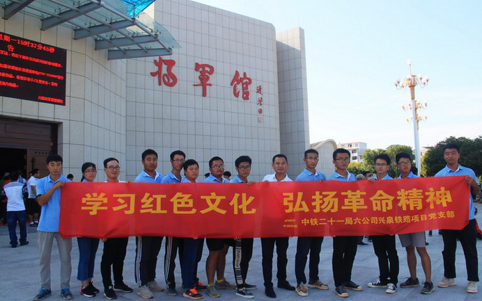 清风网讯(特约记者 常魁星 通讯员 王孚)红色传统要继承,不忘初心永忠诚。10月1日下午,中铁二十一局兴泉铁路XQXN-1标二分部党支部新入职的十一名青年到兴国“将军园”,开展了“学习红色文化,弘扬革命精神”活动。