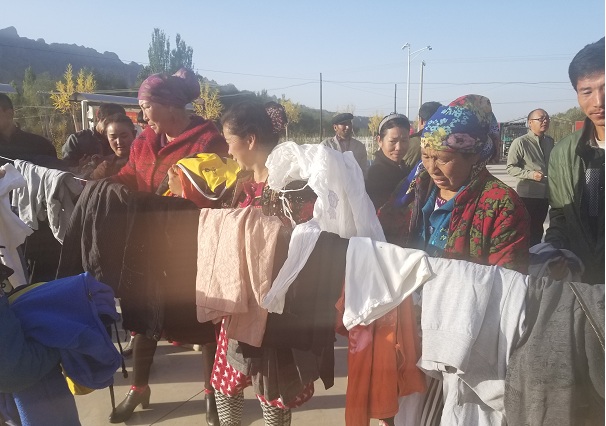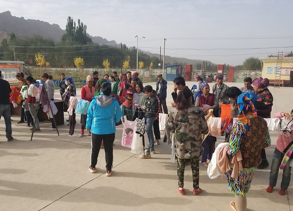 清风网讯 (通讯员 潘世洋)又是个金秋的十月,又是个装满收获的季节。虽然天气在一天天的变冷,但是农发行拜城县支行结亲干部的热情却与日剧增。10月10日,一件件鲜艳漂亮的服饰挂满了拜城县铁热克镇苏杭村村委会,吸引了全村的村民前来围观。