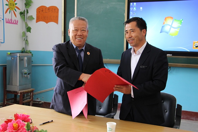 会上,库尔勒铁检院党组成员,纪检组长安增新与拉帕小学教务主任托合提.帕拉提针对明年两单位共建计划签订了协议书,希望两单位可以在党建、民族团结、精神文明、综合治理工作等多方面进行交流学习,在共同的努力下,不断前进,最终实现共赢双赢的良好目的。