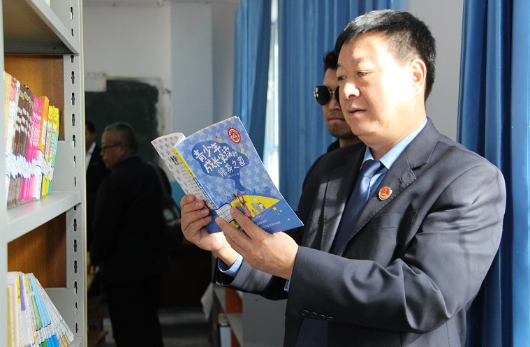 学生代表和韩勇军检察长亲切的交流了《习近平讲故事》的读后感,学生高兴地说着习近平总书记给他们生活带来的变化。“感谢习近平总书记、感谢党,感谢自治区检察院驻村工作队!自从工作队来了村里以后,修了柏油路,安了路灯,在他们的帮助下,家里牛羊成群,果实丰收,生活条件越来越好,我一定会好好学习,将来报答祖国。也感谢检察官叔叔阿姨们,给我们上法制课,让我知道了法律的重要性,也知道了可以用法律来保护自己和身边人的合法权益”。