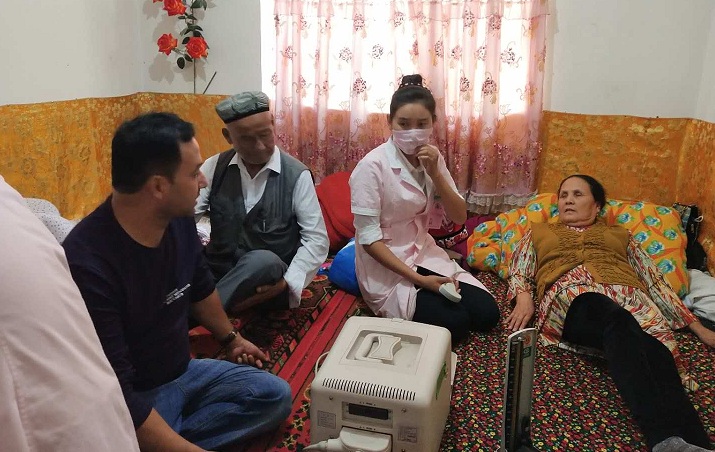 此次健康体检项目包括血压,身体体重,视力,血常规,尿常规,血脂,血糖,B超,心电图等,全部免费。工作队队长海力且木·努日跟残疾人阿依先姆说她们将会体检结果送到家里,进行健康指导,使她们及时掌握自己的身体健康状况,做好“三个早”:早发现,早诊断,早治疗。