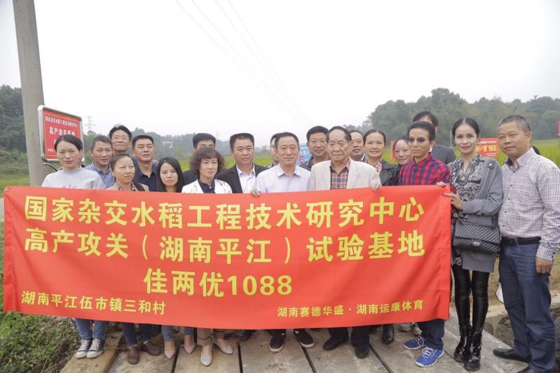 清风网岳阳讯 (陈海波 马云烽 志人)10月10日 “杂交水稻之父”袁隆平院士莅临由东莞市湖南平江商会核心企业:湖南运康体育用品有限公司并在国家级贫困县平江县长坡园艺中心创建的国家超级杂交水稻攻关示范基地检查指导,平江县政协主席******凡、副县长潘如意、平江县旅发委主任宋炼钢、东莞市湖南平江商会秘书长刘志文等全程陪同。