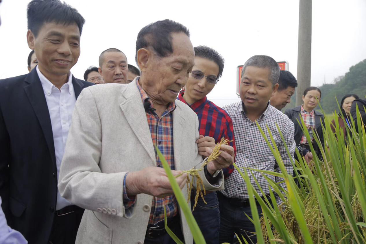 88岁的袁隆平先生亲自来到平江县伍市镇三和村田间了解超级稻攻关示范基地的建设进度,察看了基地的超级稻生长情况。亩产预测超过1000公斤,他说:“选择在平江这个国家级贫困县建超级杂交水稻的攻关示范基地,是综合了以下几点:1, 丘陵地区又是低海拔(海拔100米)是首次试种;;2, 科学的种植,精细化的管理,每天详细的数据记录;3, 化肥减量(减30%),农药减半且全生长期只用3次。