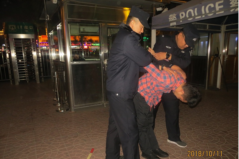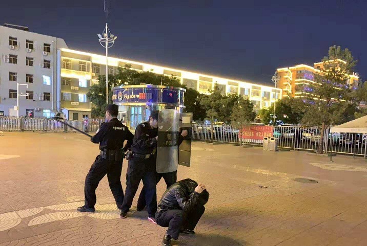 原来,这是包头铁路公安处包头东车站派出所进行的一次夜间反恐演练。为进一步震慑不法分子,维护社会治安秩序稳定,10月11日晚,包头东车站派出所副所长魏强组织当班民警、特警,开展以“进站口发现刀斧砍恐怖分子”为设定警情的反恐演练。此次演练提高了派出所民警处置突发事件及各警种协调配合能力,增强了民警们的危机意识,为保障铁路运输安全和旅客生命财产安全保驾护航,在寒夜中展现铁警雄风。