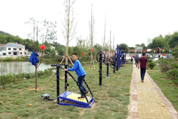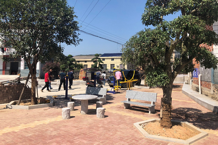 几个月前的朱家冲还完全不是这般光景,尽管地处铁山水库边,有绿水有青山,但是进组道路狭窄交通不便,破败的“空心房”也是大煞风景。今年5月份,月田镇党委、政府与铁山湖村村支两委以空心房专项整治工作为契机,在拆除闲置空心房的同时,努力争取移民美丽家园整村推进项目,整合项目资金300多万元,拓宽朱家冲一带道路,路两旁均匀的种植了行道树,种花铺草,科学的规划休闲绿地并布置健身器材,促进该区域环境的整体提升,朱家冲广场与休闲绿地也成为了附近村民休闲散步娱乐的好去处。