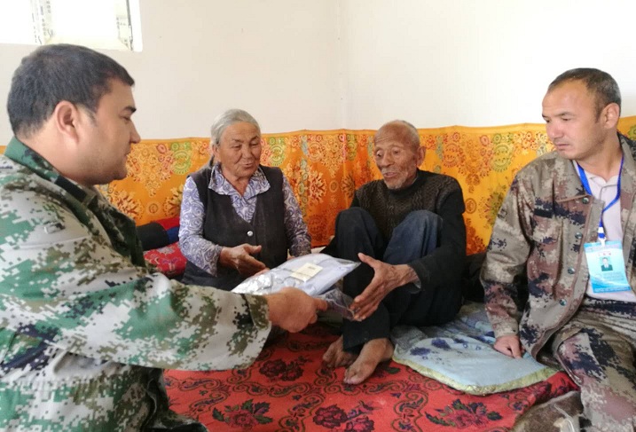 10月12月,工作队看望并慰问老人沙木沙克.亚森