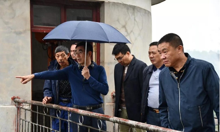 阳晓华(前左二)在沈家水厂视察