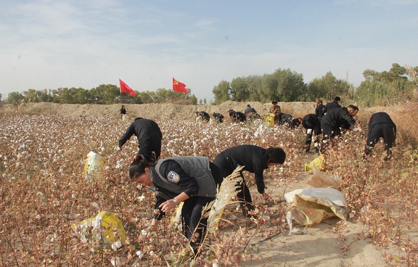 清风网讯 (通讯员 沙雅县公安局 窦明媛) 10月14日,沙雅县公安局局机关20余名民辅警在驻村工作队的带领下,来到贫困户玉散·艾合买提家中的8亩棉花地开展拾花助贫工作。