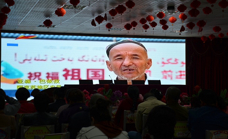 来自东区的依麦尔·玉山老人是一名退休老师,孩子都不在身边,一个人在社区居住。他一边看着电视,一边不住的擦着泪水,电视片中维吾尔族大妈和亲戚拥抱着离别的场面,就像昨天发生在自己家中的一幕。他激动的说:“今年每逢节假日,县人社局的结亲干部都来我家里,帮我炸馓子、做抓饭,平时还帮我解决各种困难,嘘寒问暖,就和这片子里的库尔班老人一样。民族团结一家亲,我们都是一家人。”