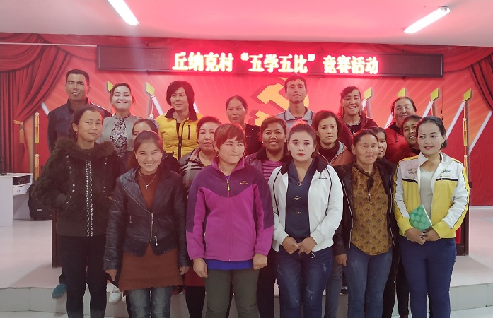 10月12日,克孜尔乡丘纳克村活动室掌声、喝彩声一阵比一阵高,村里的居民和村干部30人正在举办“五学五比”竞赛活动。