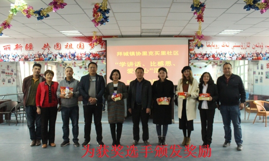 将经过激烈角逐,分别评出一、二、三等奖,工作队队长和社区主任为获奖选手颁发了纪念品。“能用国家通用语言地讲述发生在我身边的民族团结故事,我很开心。”获得此次讲故事比赛第一名的海热古丽兴奋地说。